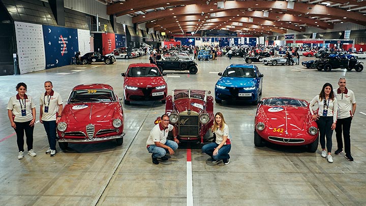 كالعادة، تتوّج ألفا روميو هذه الفعالية بمشاركة 50 سيارة من سياراتها من نقطة الانطلاق، ولكنها تجمع هذا العام بين تراثها والمستقبل. وستشمل هذه السيارات ثلاث سيارات نادرة من مجموعة العلامة الخاصة، هي C6 1500 سوبر سبورت موديل 1928، و1900 سبورت سبايدر موديل 1954، و1900 سوبر سبرينت موديل 1956. أمّا قيادة هذه التحف الثلاث، فستتوالاها فرق استثنائية، مثل الثنائي المتعدد الألقاب جيوفاني موتشيري وفاليريا ديشيمبري في السيارة الأولى، وفرانشيسكو بيروزي، عضو قسم هياكل السيارات في مصنع جيامباتيستا فيكو في بوميليانو مع كريستينا بوستا، موظفة في قسم التجميع في مصنع كاسينو في السيارة الثانية، وأخيرًا، يتنافس أليساندرو ألوني برافي، المدير الإداري لشركة ساوبر موتورسبورت، والسائق والمعلّق الرياضي فيكي بيريا على متن سيارة سبايدر سبورت 1900.